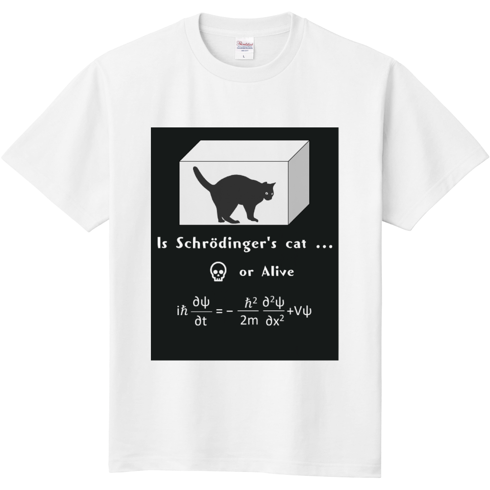 シュレーディンガーの猫をモチーフとした理系Tシャツです。