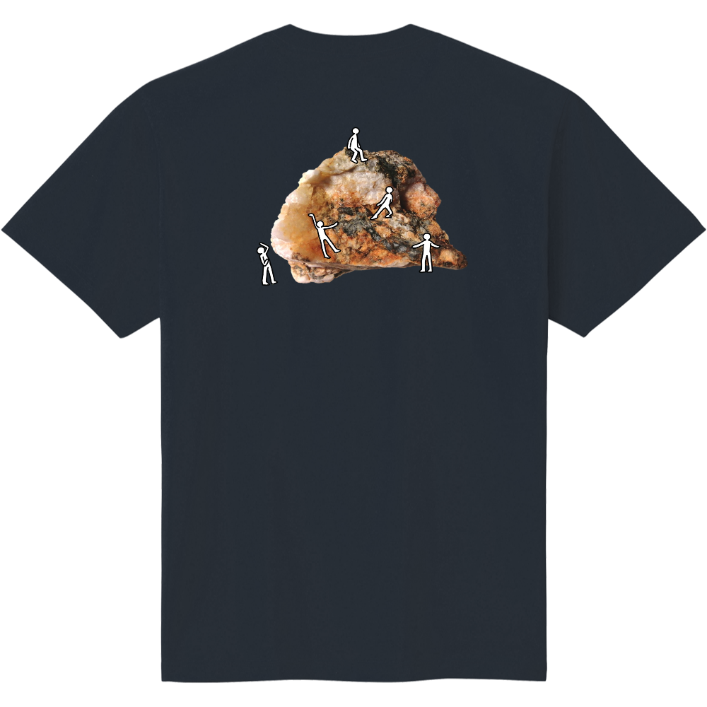 採取した実際の石ころにクライマーが群がるイラストTシャツです。