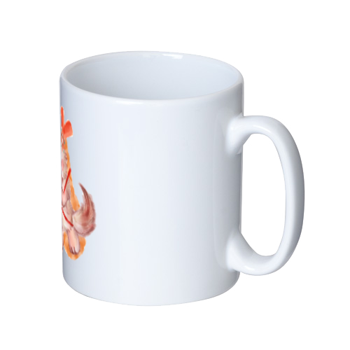 転写紙にインクをプリントし高温の熱をかけることで、インクを気化させマグカップに浸透させる加工方法です。マグカップに直接浸透させることで、表面には印刷した違和感(凸凹)が全く残りません。