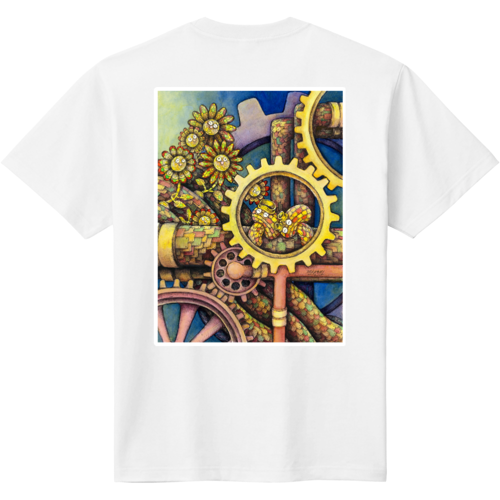 定番Tシャツ 『お花との出会い』ギアとパイプの世界シリーズ バックプリント