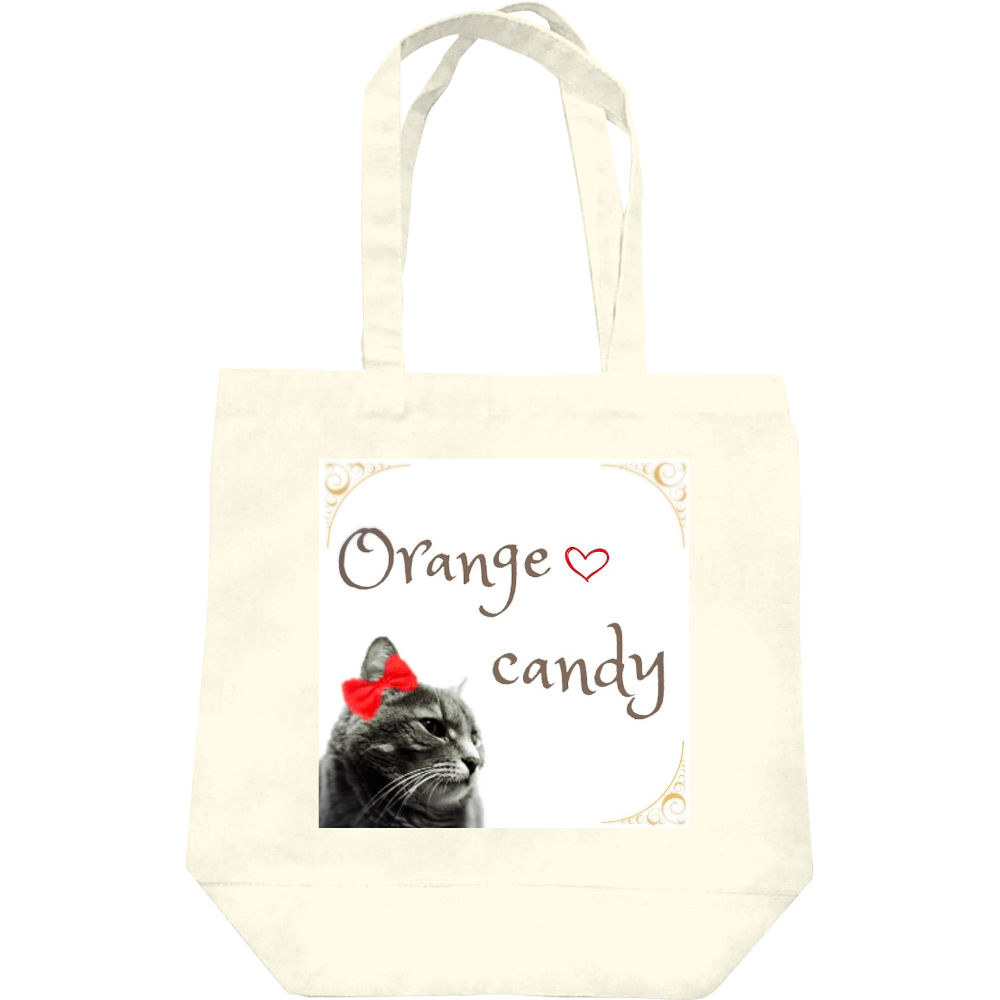 orange&candyのロゴとリボンを付けたネコがキュートです❗️