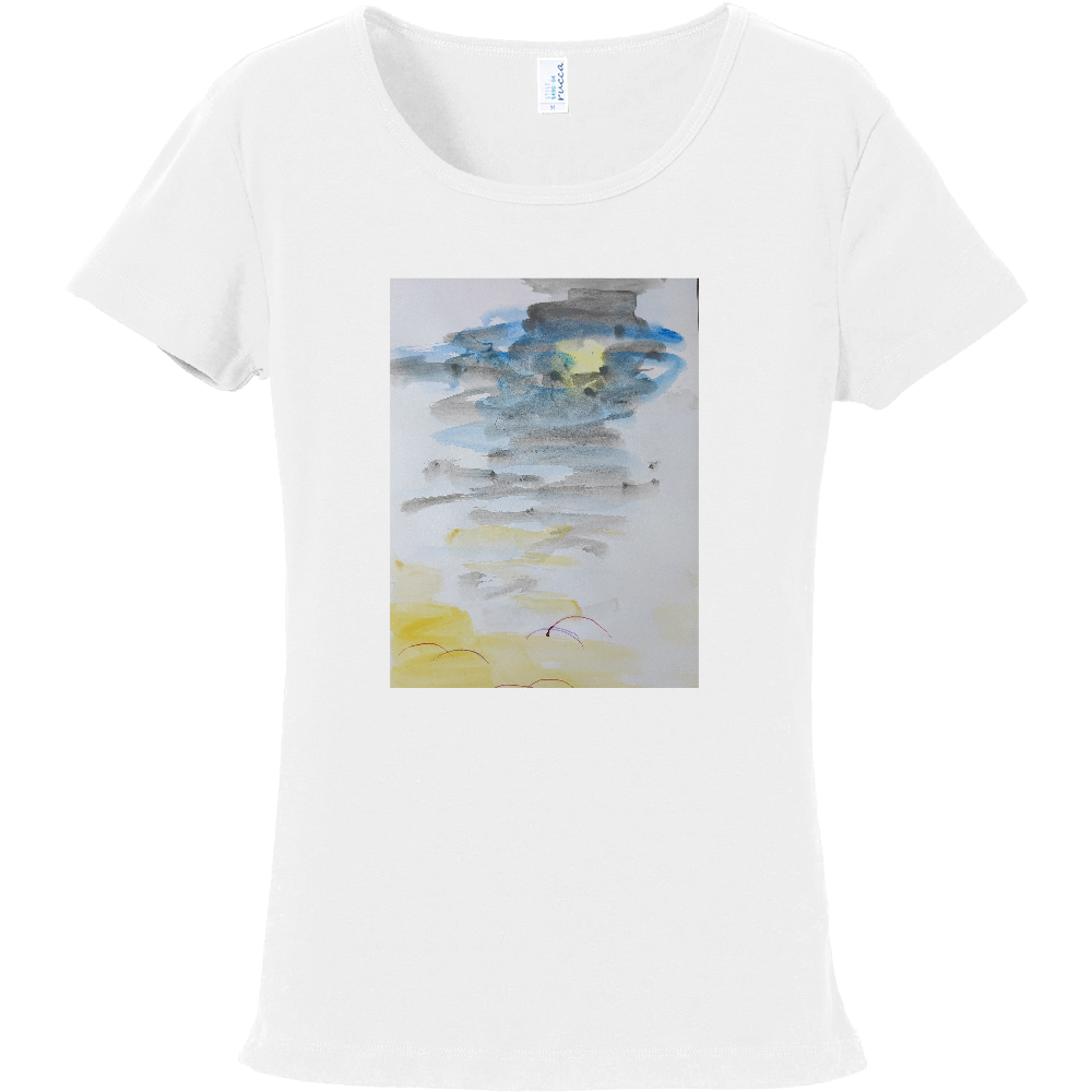 淡い色で描いたイラストがちゃんとそのままきれいにプリントされてました。レディースのTシャツは伸びが良くて好きなタイプです。