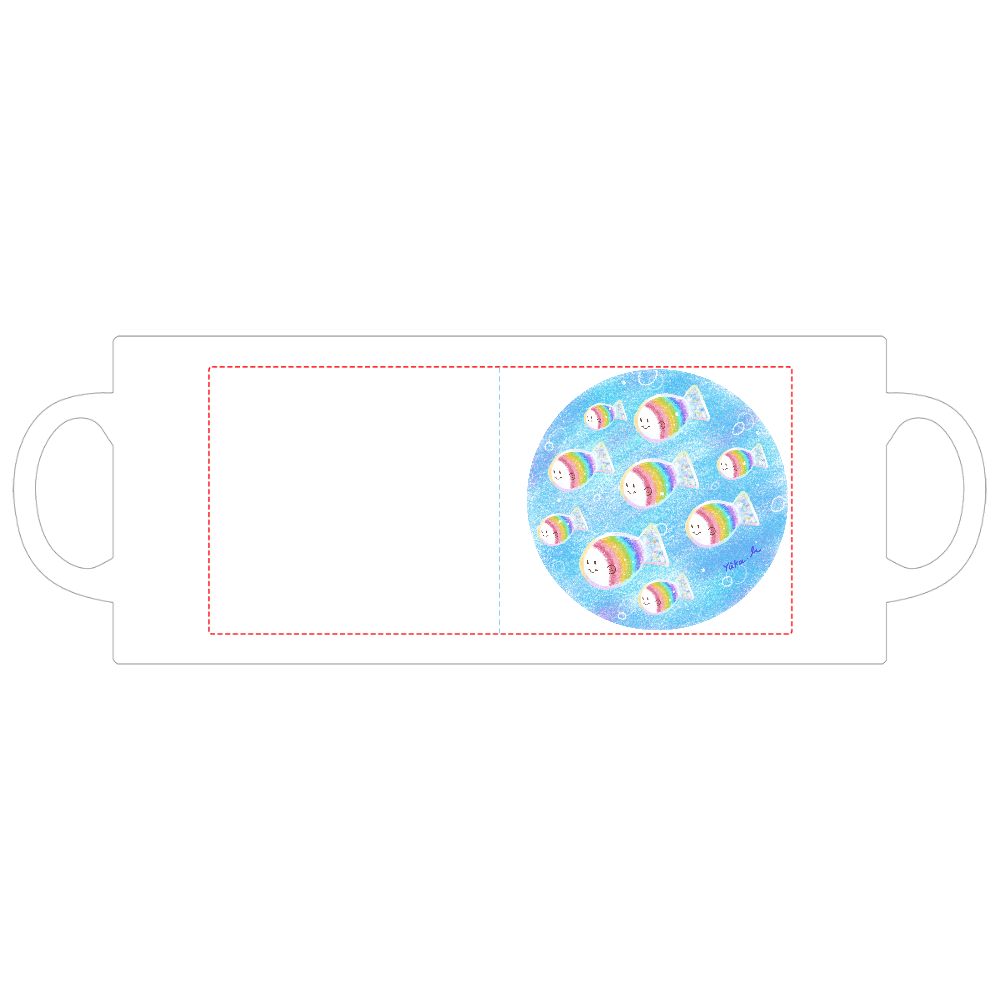 プリントの発色がとても綺麗。マグカップのツヤ感も好きです。