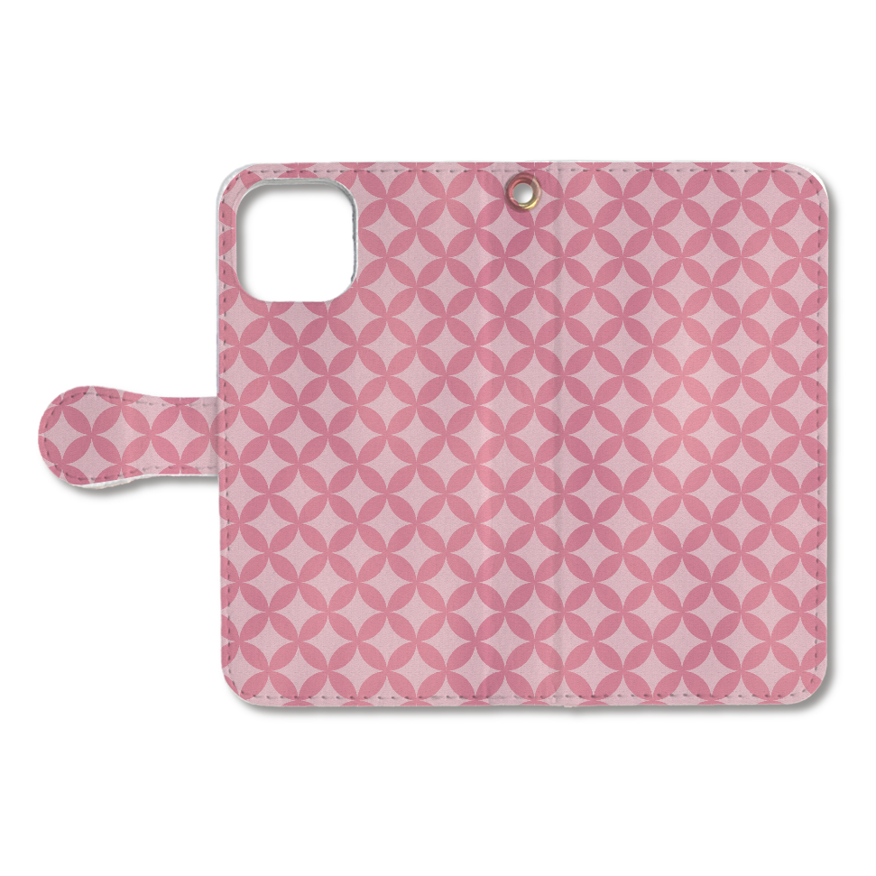 七宝柄の手帳型スマホケース。対応機種はiPhone13miniになります。