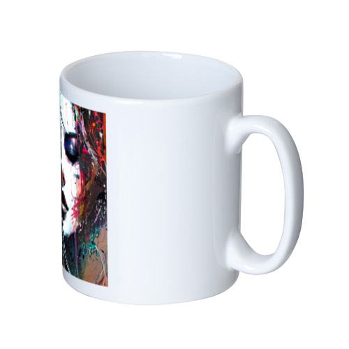 転写紙にインクをプリントし高温の熱をかけることで、インクを気化させマグカップに浸透させる加工方法です。マグカップに直接浸透させることで、表面には印刷した違和感(凸凹)が全く残りません。