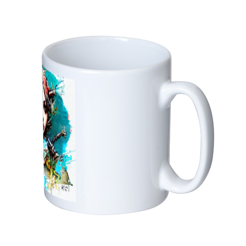 転写紙にインクをプリントし高温の熱をかけることで、インクを気化させマグカップに浸透させる加工方法です。マグカップに直接浸透させることで、表面には印刷した違和感(凸凹)が全く残りません。