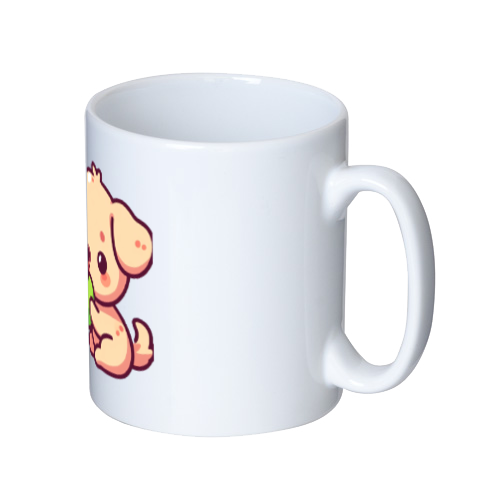 転写紙にインクをプリントし高温の熱をかけることで、インクを気化させマグカップに浸透させる加工方法です。マグカップに直接浸透させることで、表面には印刷した違和感(凸凹)が全く残りません。