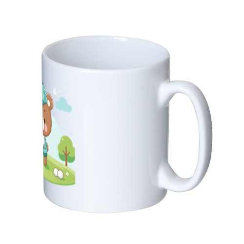 転写紙にインクをプリントし高温の熱をかけることで、インクを気化させマグカップに浸透させる加工方法です。マグカップに直接浸透させることで、表面には印刷した違和感(凸凹)が全く残りません。