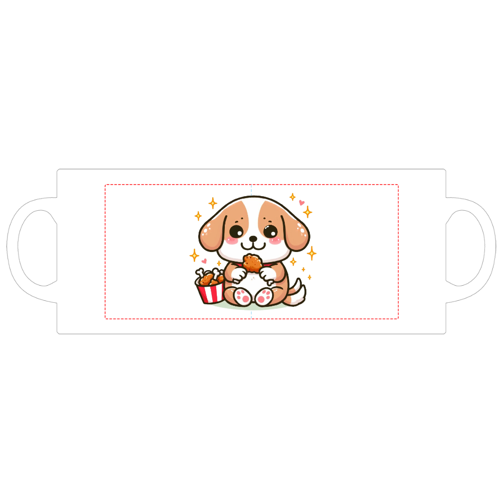 転写紙にインクをプリントし高温の熱をかけることで、インクを気化させマグカップに浸透させる加工方法です。マグカップに直接浸透させることで、表面には印刷した違和感(凸凹)が全く残りません。