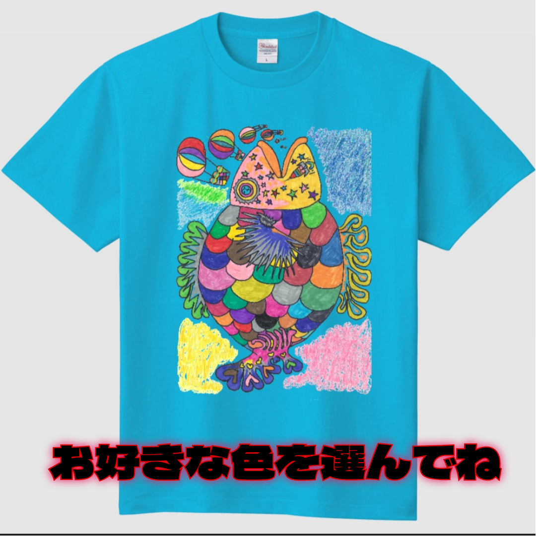 魚座の僕の頭の中で『BO GUMBOS(ボ・ガンボス)』さんの『魚ごっこ』という曲の中に出てくる『魚なんだからうおうおうおうおうおうお』というフレーズがループしている時に絵を描いていたら、出来上がった絵をプリントしたものです。