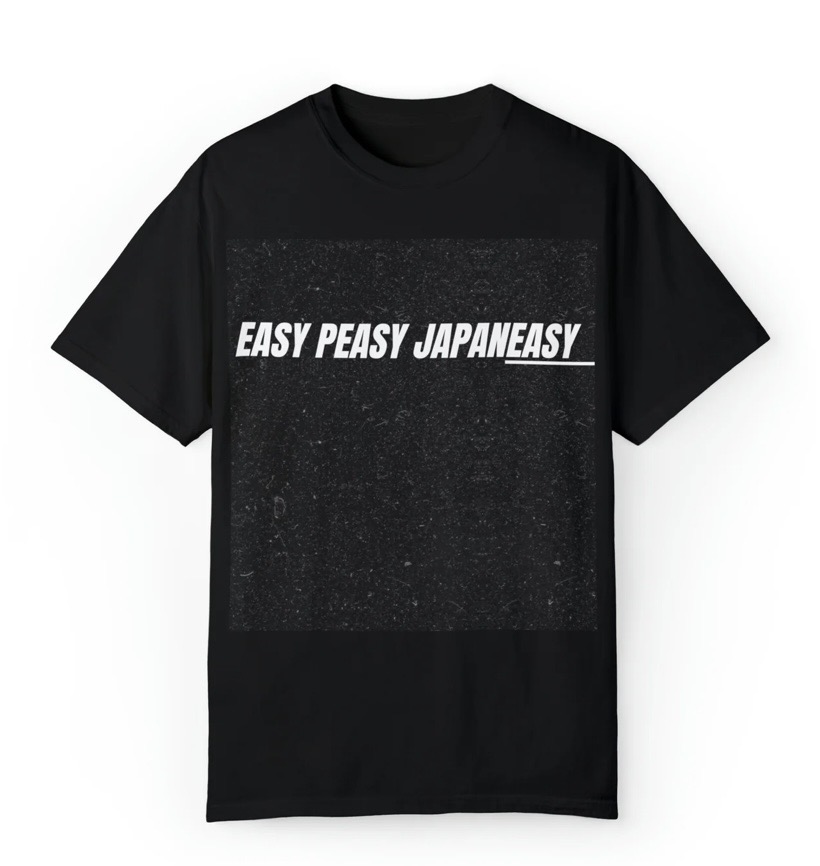 英語の熟語である【Easy Peasy Lemon Squeezy / 余裕のよっちゃん】という言葉を【Easy Peasy JapanEASY / 日本語は余裕のよっちゃん】とユニークにデザインしたTシャツにです。外国人にとって日本語学習は難しいというイメージがあるので、このTシャツはいろんな人たちを笑顔にするまたは場を和ませる効果があります。実証済みです!笑