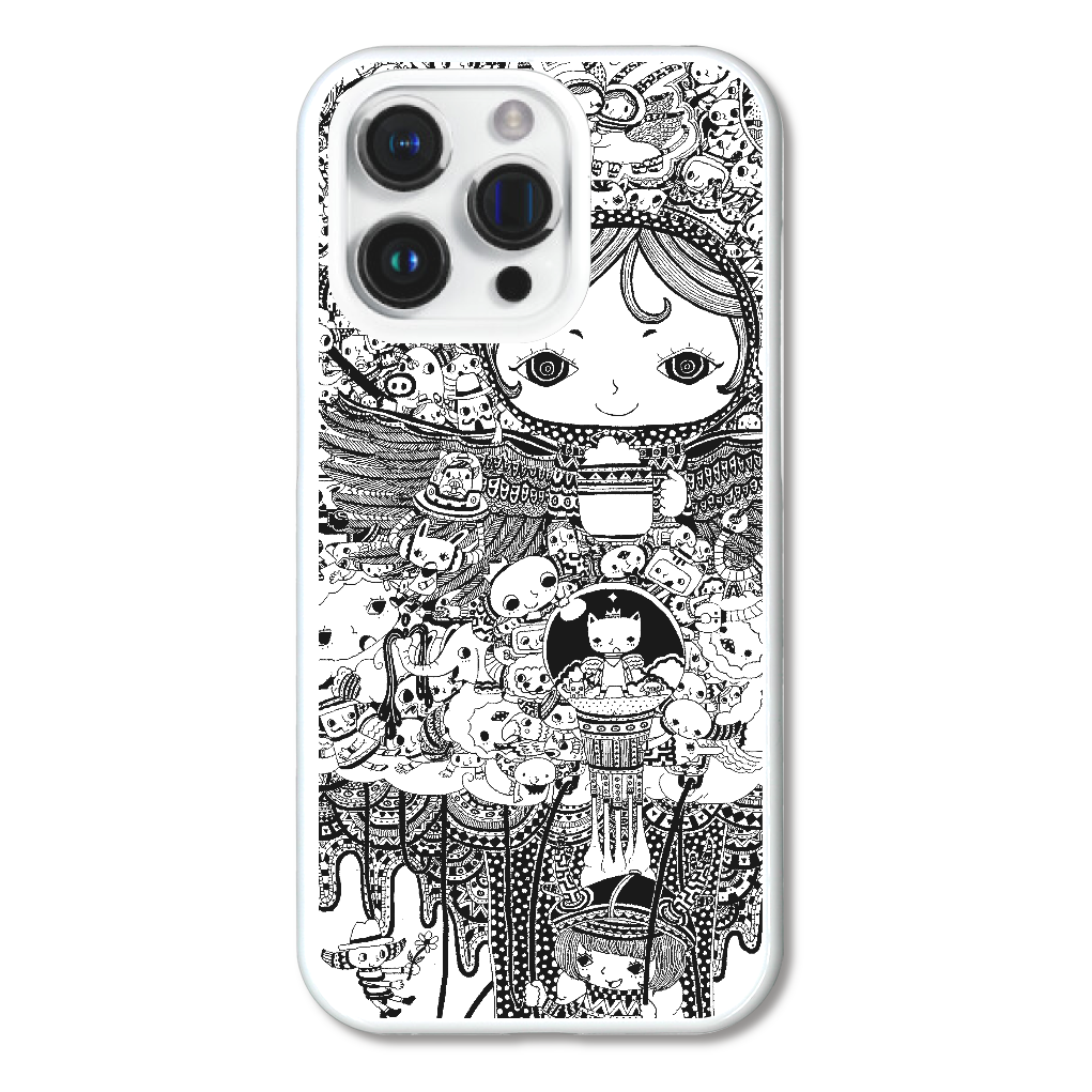 細かいキャラクターが描かれたアートでファショナブルな作品を販売しています。全面に隙間なく描かれた、不思議なキャラクターたちが織りなす独特の世界観。