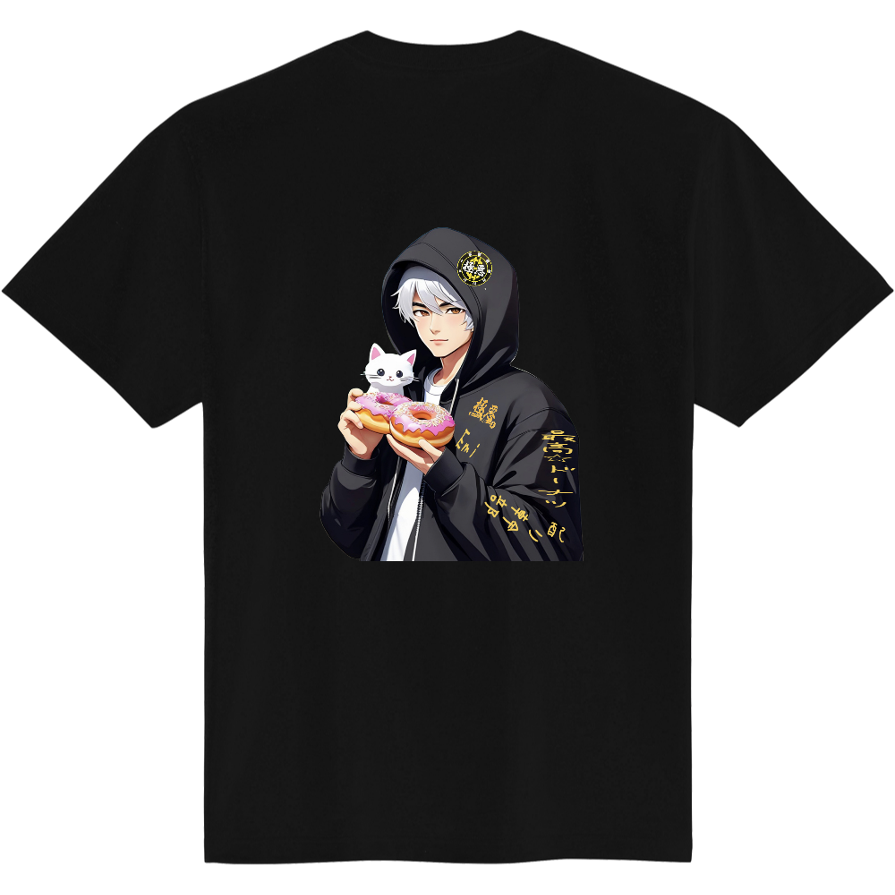 黒地Tシャツなのに絵柄が鮮明に処理されていて。