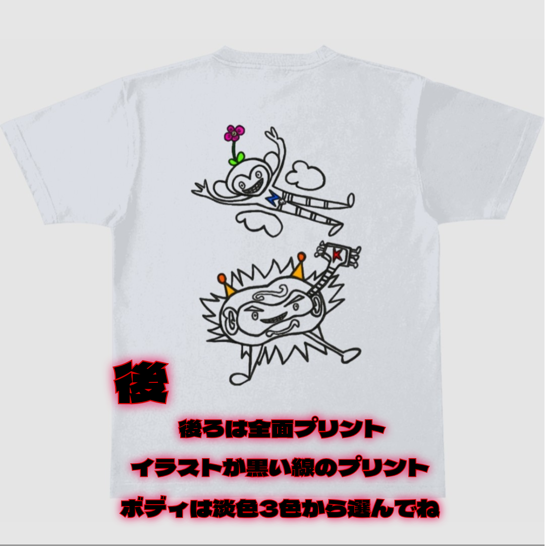 前がポケット付き(ユニット名のプリント入り)で後ろが黄色い線のイラストのみのプリント(ボディカラーを濃色4色)から選びたい場合は、FLYING HIGH Ver.2、前がポケット付き(プリントがなし)で後ろがユニット名と黒い線のイラストのプリント(ボディカラーを淡色3色)から選びたい場合は、FLYING HIGH Ver.3、前がポケット付き(プリントがなし)で後ろがユニット名と黄色い線のイラストのプリント(ボディカラーを濃色4色)から選びたい場合は、FLYING HIGH Ver.4から注文してください。