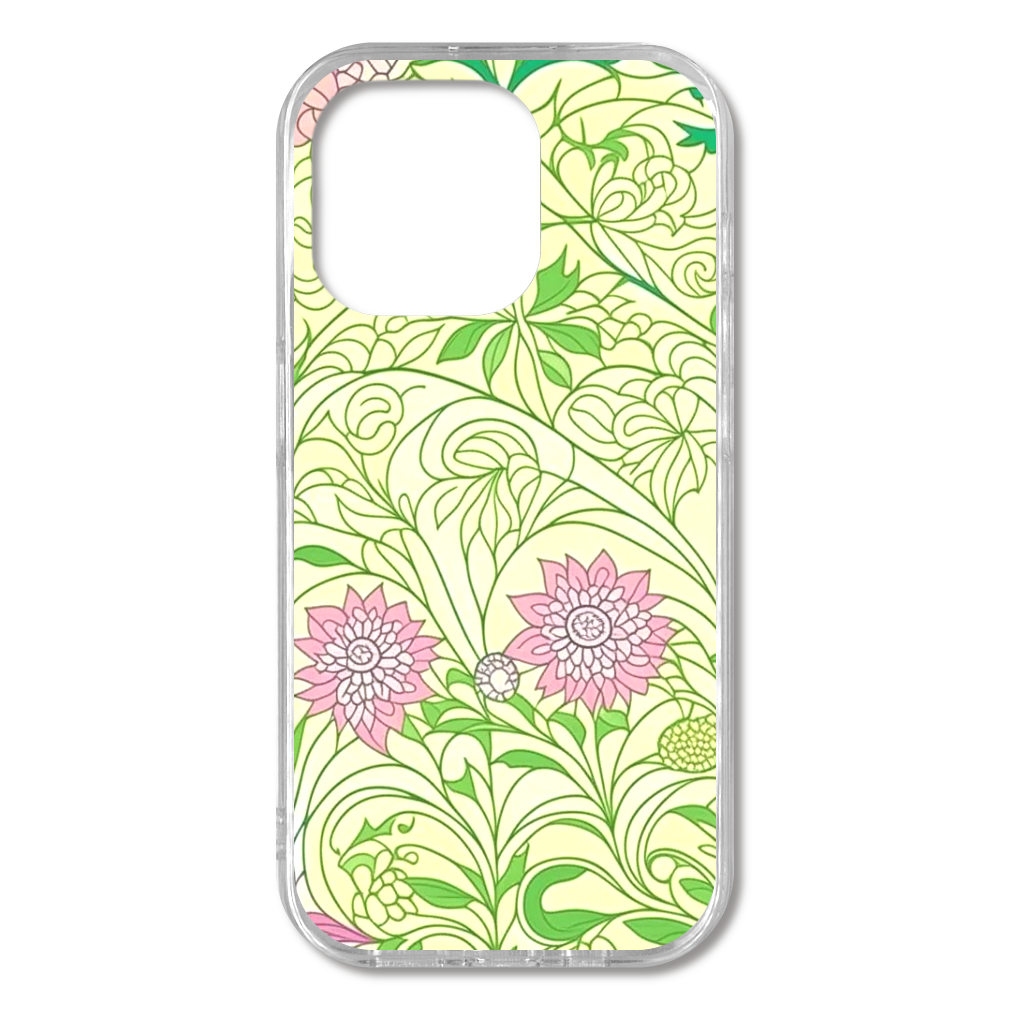 2つの赤い花が目立つウィリアム・モリス風花柄。