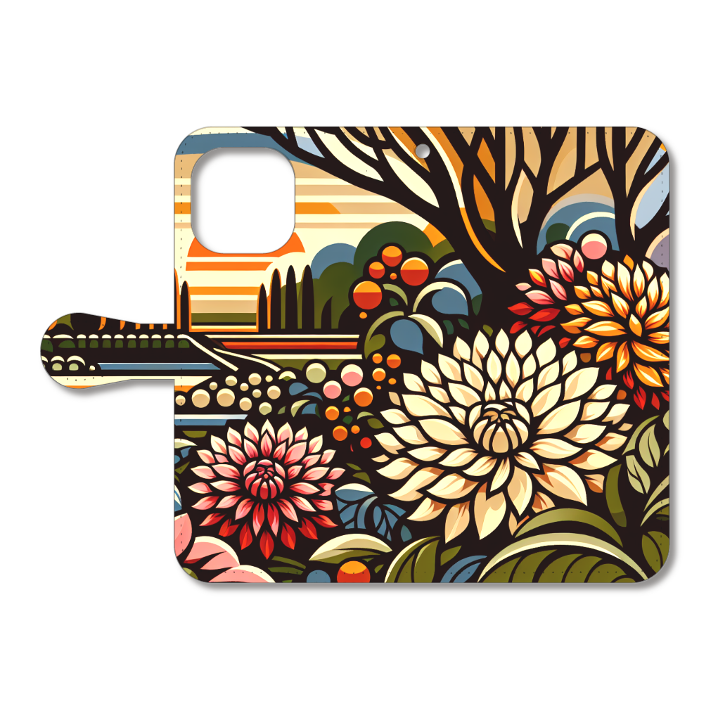 夕日のダリア スマホケース 手帳型ベルト付き iPhone15 Pro Max