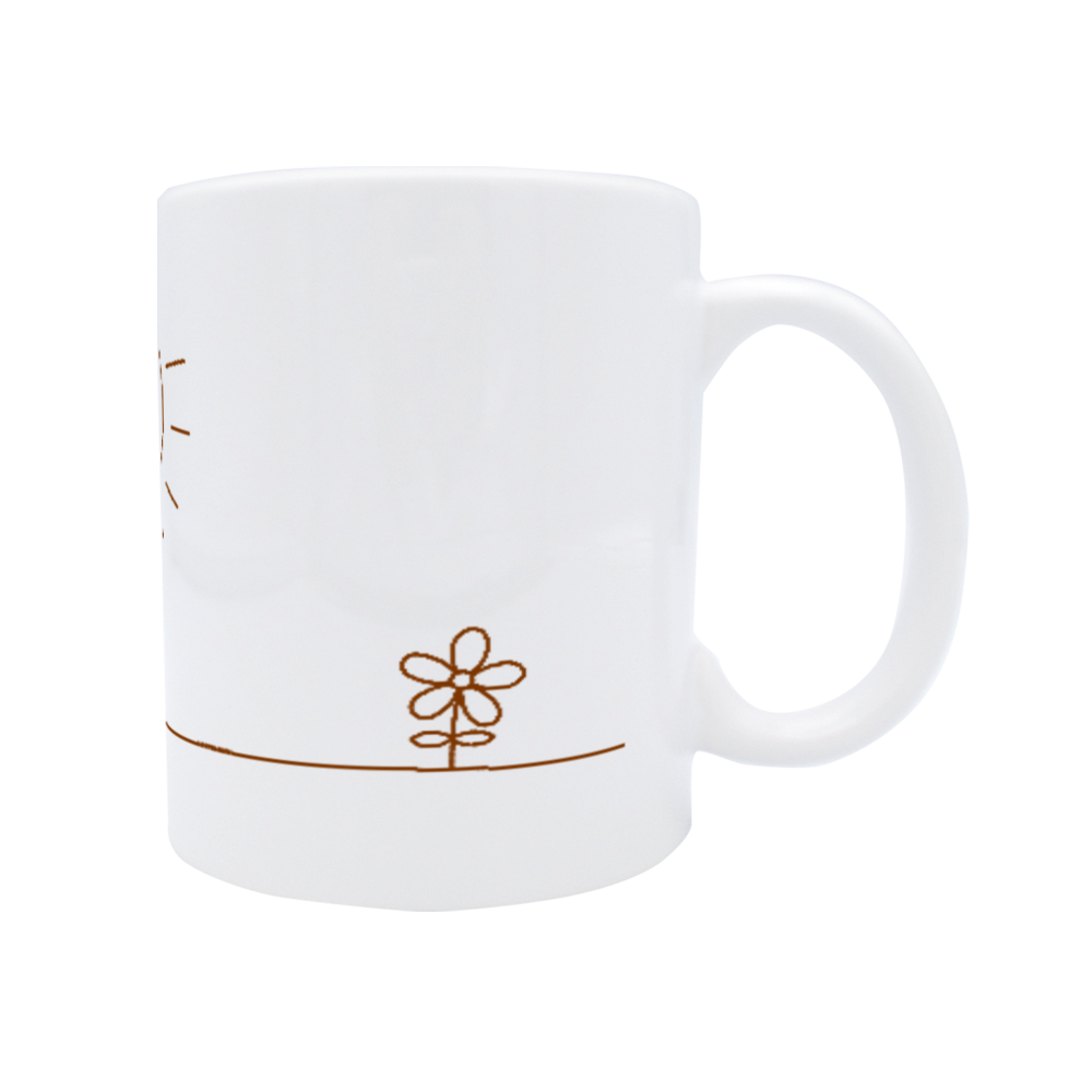 転写紙にインクをプリントし高温の熱をかけることで、インクを気化させマグカップに浸透させる加工方法です。マグカップに直接浸透させることで、表面には印刷した違和感(凸凹)が全く残りません。