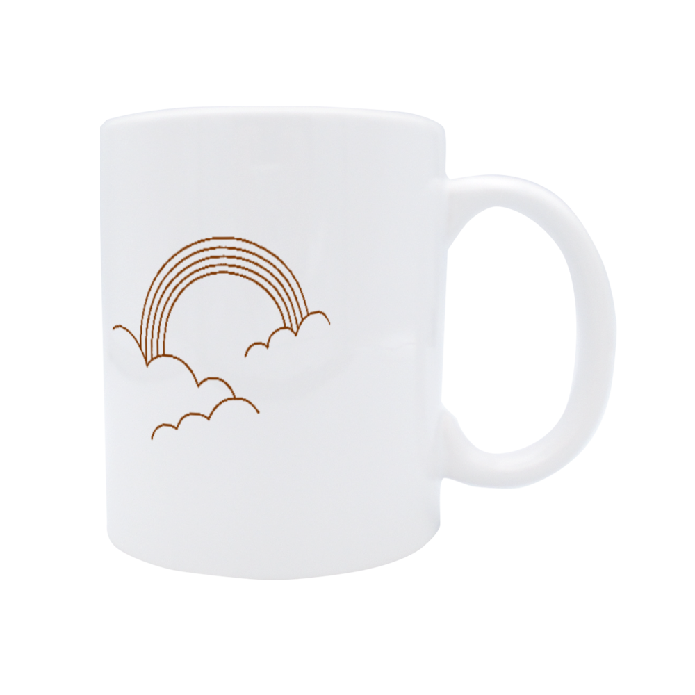 転写紙にインクをプリントし高温の熱をかけることで、インクを気化させマグカップに浸透させる加工方法です。マグカップに直接浸透させることで、表面には印刷した違和感(凸凹)が全く残りません。