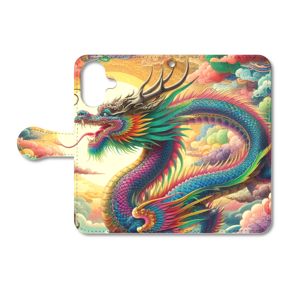 商品説明:手帳型ベルト付きiPhone16ケース「龍」