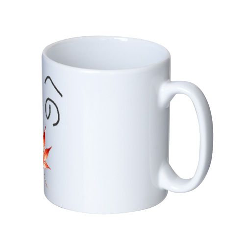 転写紙にインクをプリントし高温の熱をかけることで、インクを気化させマグカップに浸透させる加工方法です。マグカップに直接浸透させることで、表面には印刷した違和感(凸凹)が全く残りません。
