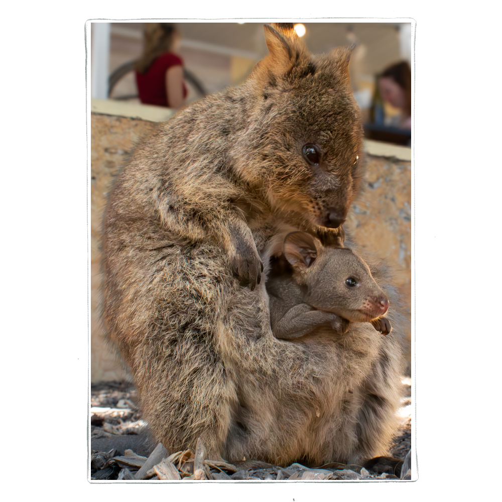 この動物は世界一幸せな動物と呼ばれている「クォッカ」です。いつも笑顔で幸せそうな顔をしていることからそう呼ばれています。