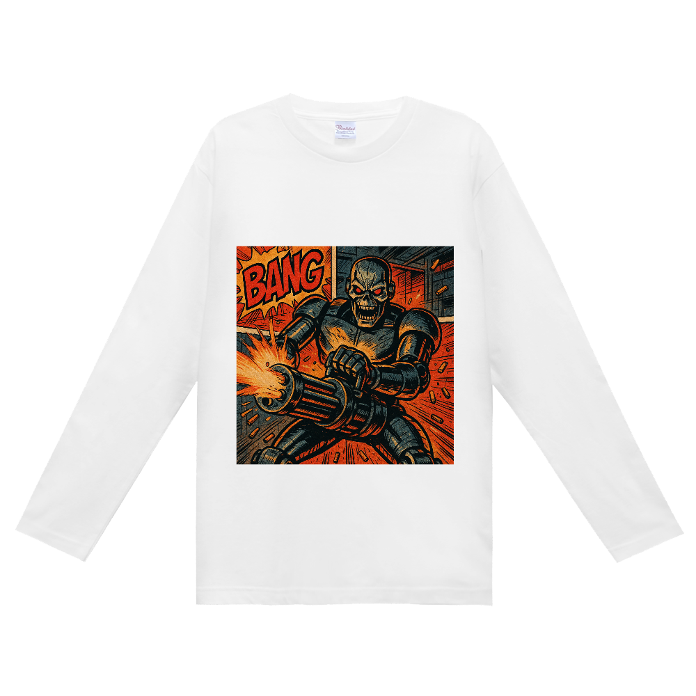 ミニガンロボットアメコミ風/定番長袖Tシャツ