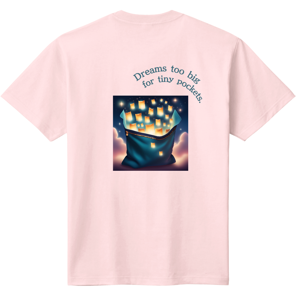 「ポケットに入りきらないくらいの大きな夢」というテーマのTシャツです。