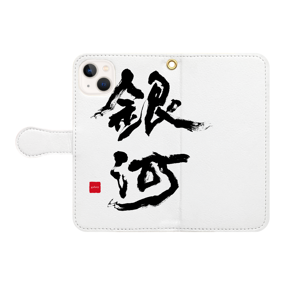 筆文字「銀河」は、力強さと情熱を感じさせる作品です。落款には英語訳「galaxy」が添えられており、国境を越えたメッセージを届けています。