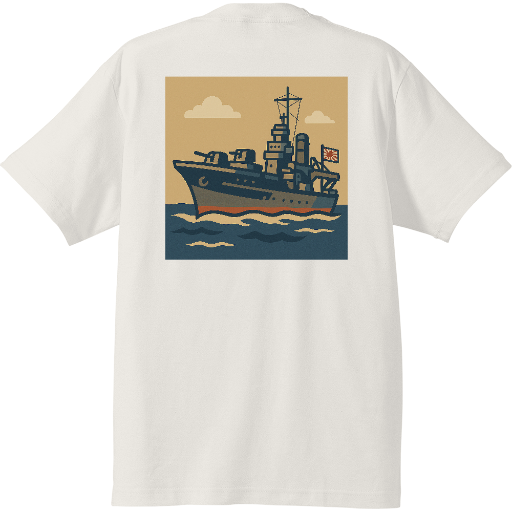 旧日本海軍の水上機母艦「千歳」を、ポップで親しみやすいミリタリーデザインで表現したオリジナルTシャツです。