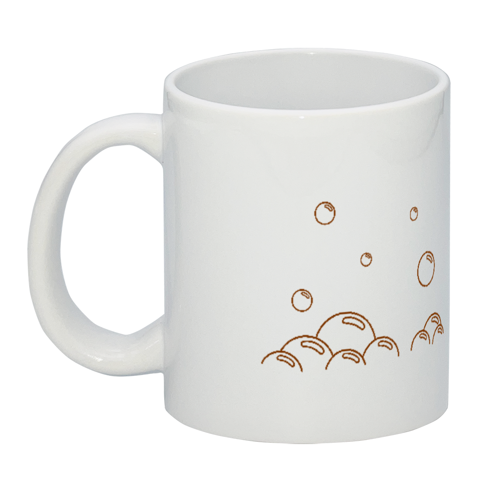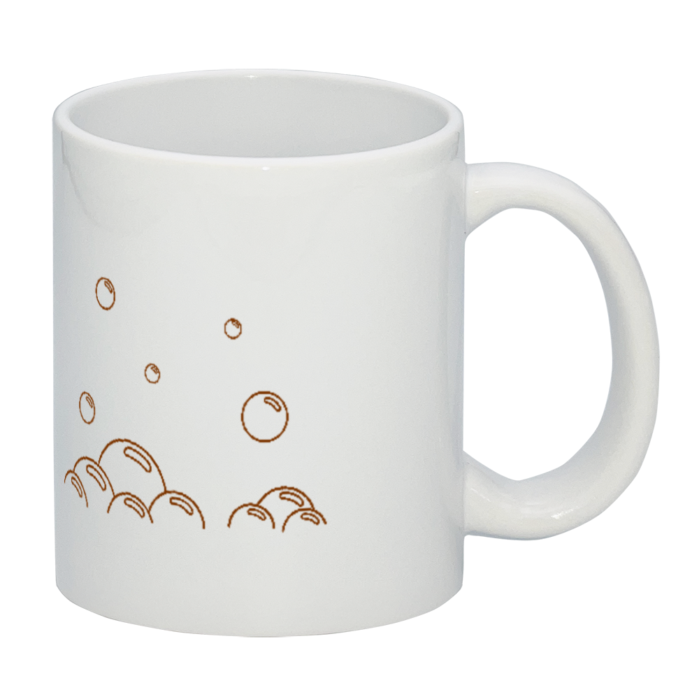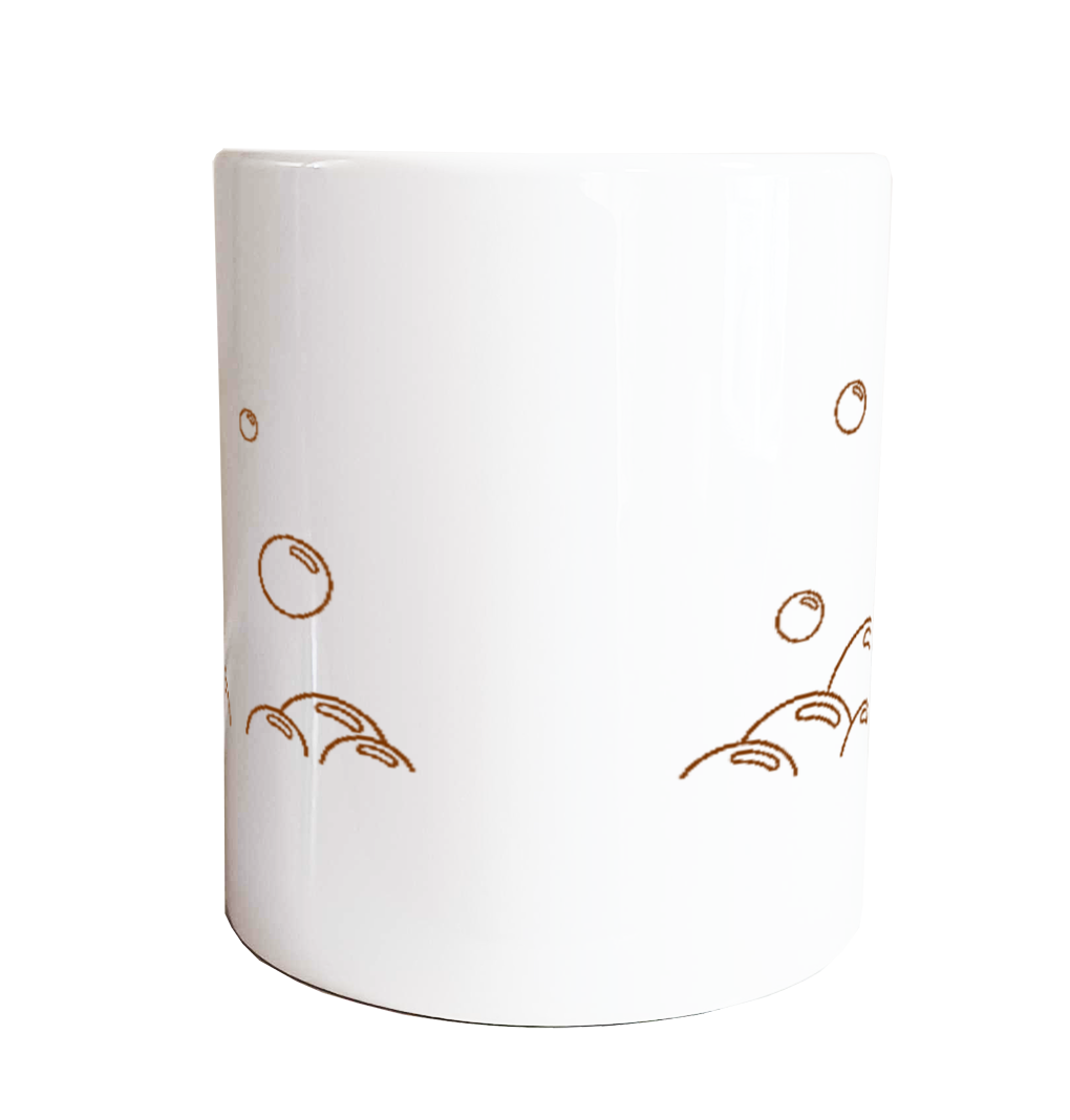転写紙にインクをプリントし高温の熱をかけることで、インクを気化させマグカップに浸透させる加工方法です。マグカップに直接浸透させることで、表面には印刷した違和感(凸凹)が全く残りません。