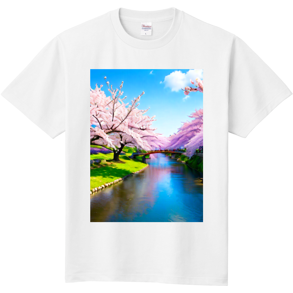 春の訪れを感じさせる絶妙なデザイン、「桜と川のTシャツ」が登場です。日本の美しい自然をモチーフにしたこの一枚は、オリジナル画像を使用し、他にはない唯一無二の仕上がりとなっています。