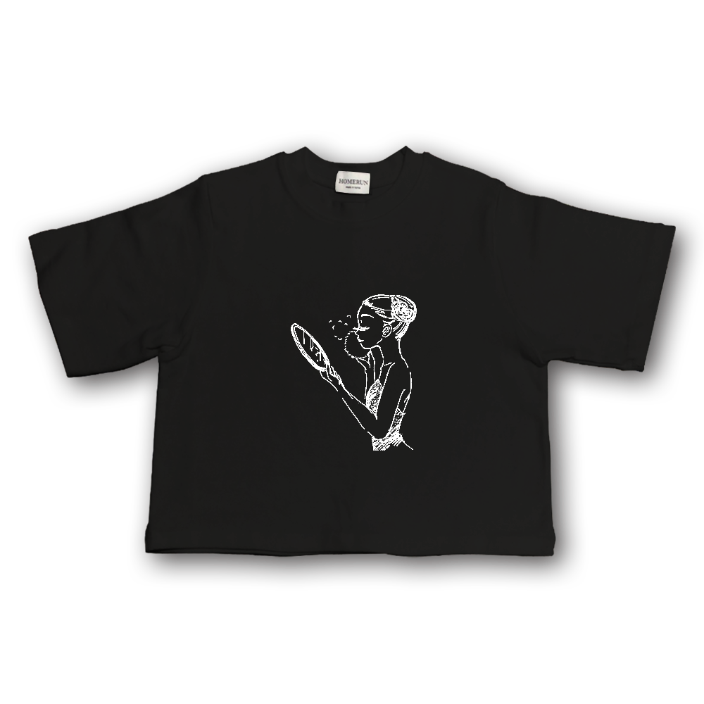 繊細な線のデザインが思った通りの仕上がりでした!クロップド丈の形も可愛いくてお気に入りTシャツです♡