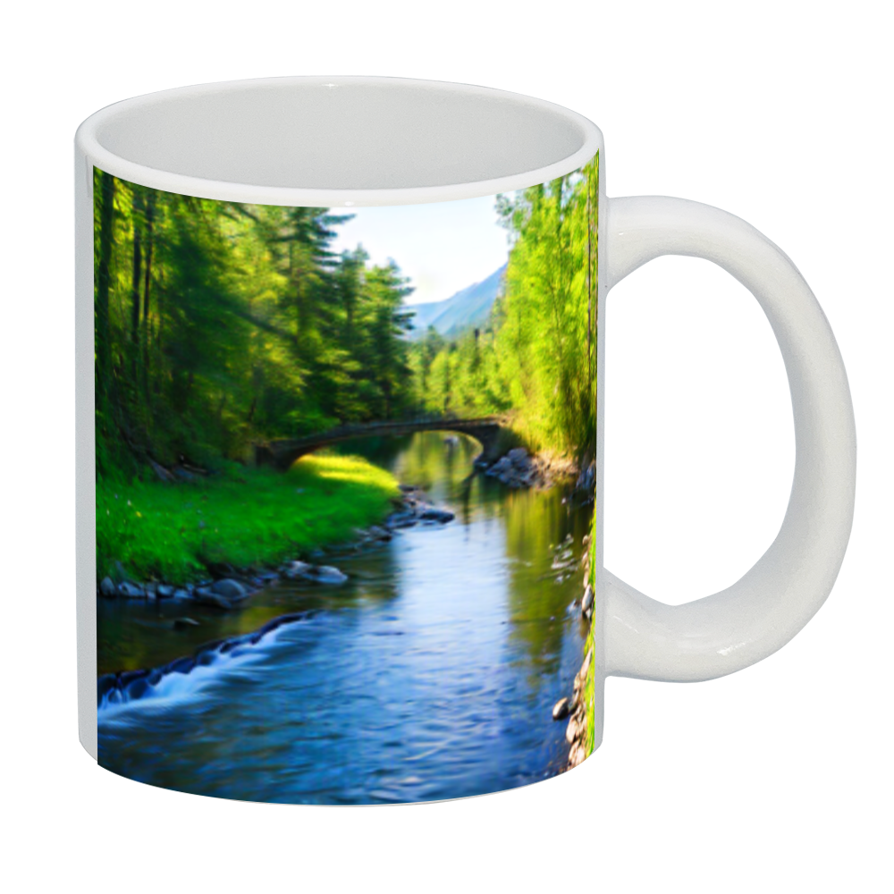 美しい川の風景をプリントした、毎日のコーヒータイムを彩るオリジナルマグカップです。高品質な陶器素材を使用し、耐熱性も抜群。デザインは自然の風景を忠実に再現し、見るたびに癒される一品です。オフィスやご自宅でのリラックスタイムにぴったりです。