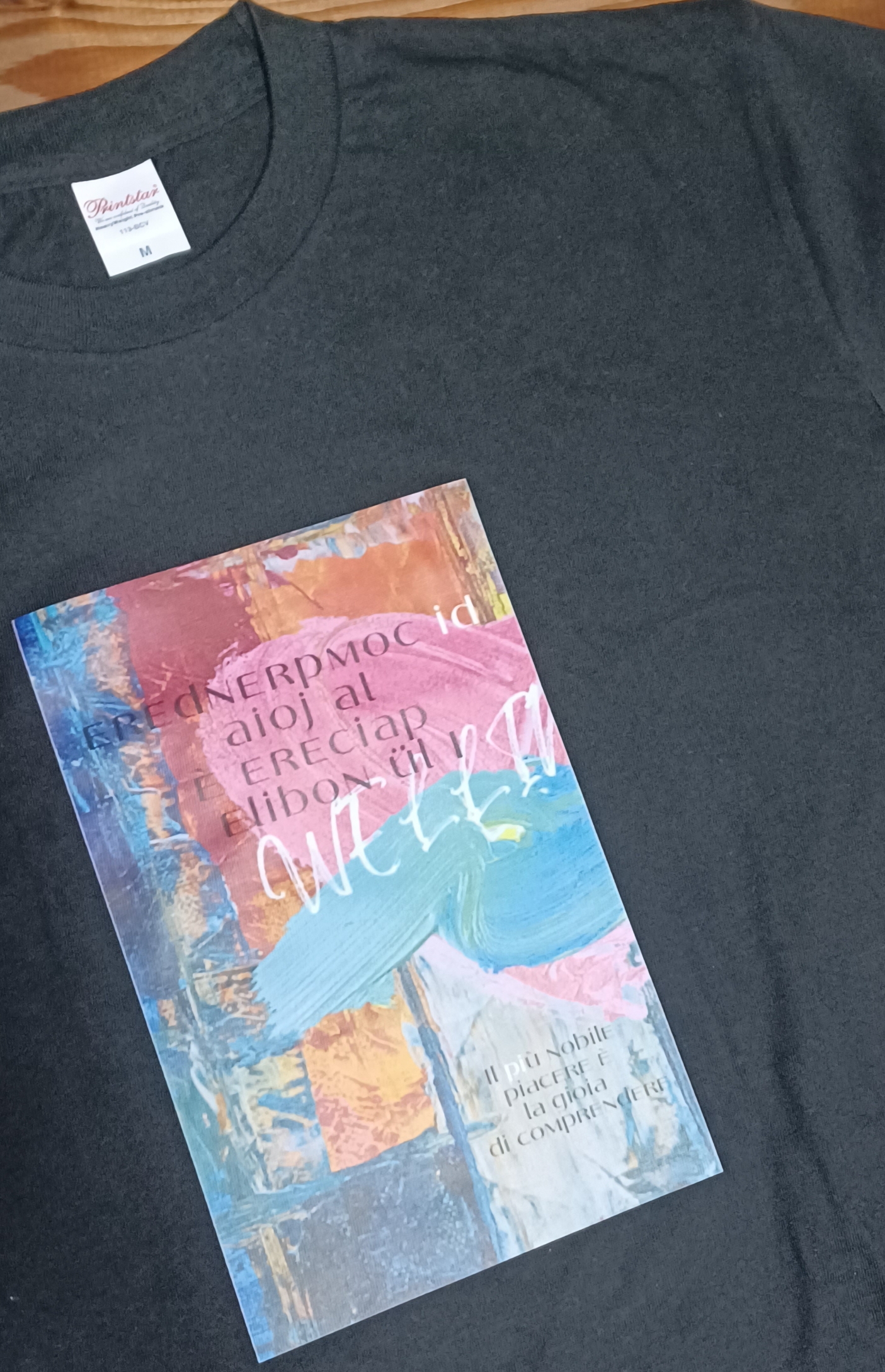 1枚からフルカラーで手軽にプリント。アパレル風の自然な風合いになります