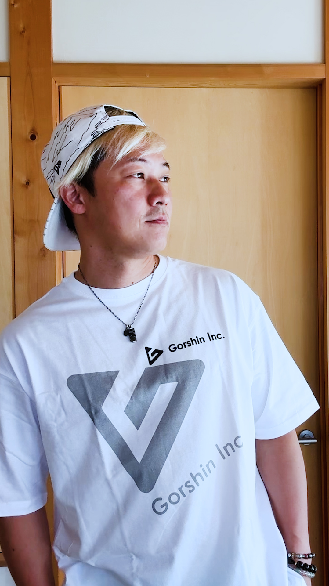 Gorshinビッグロゴ入りのインパクトのあるTシャツ。ホワイトです。