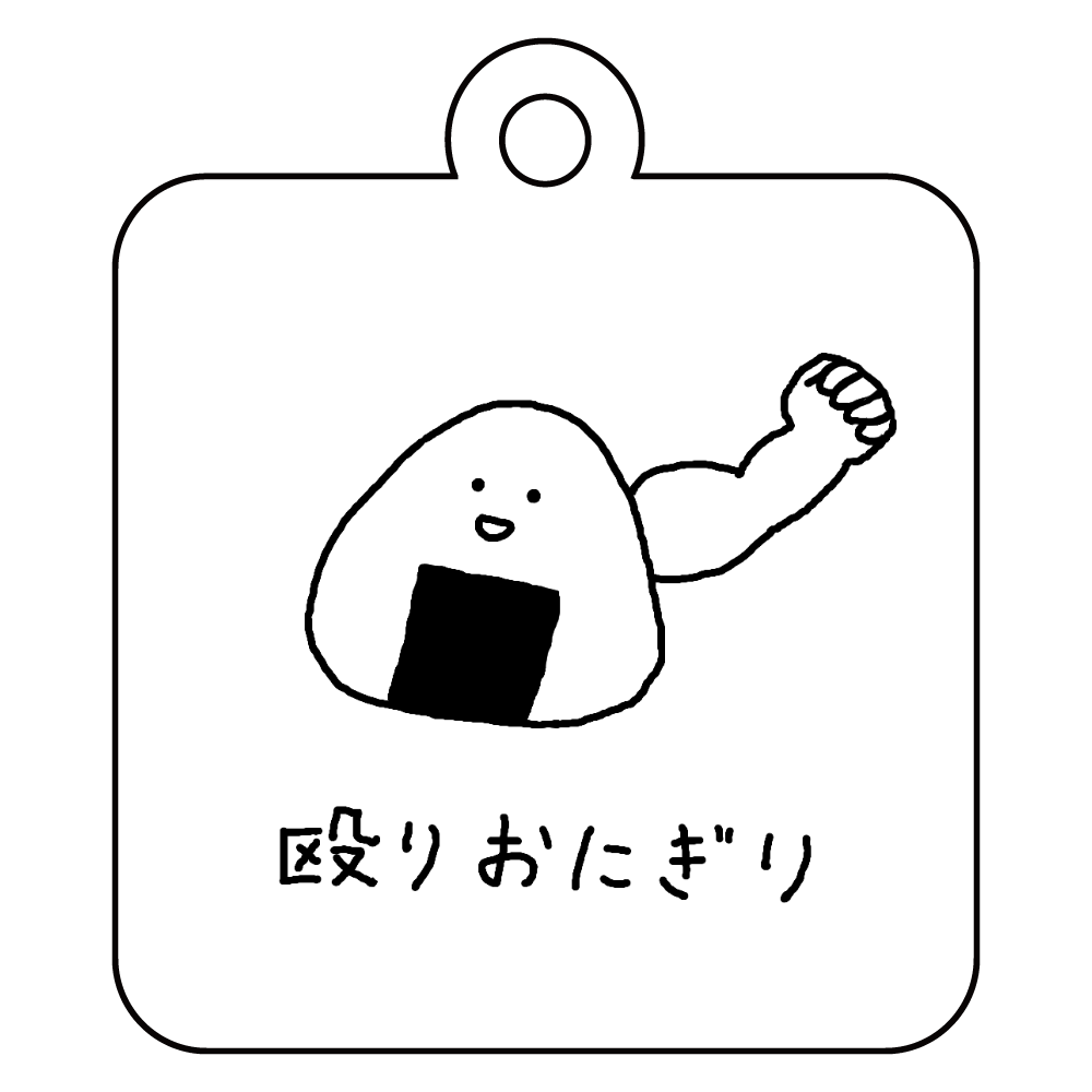 オリジナルデザイン【殴りおにぎり】の4cm×4cmサイズのキーホルダーです。