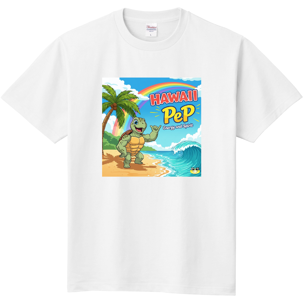 上部には、赤い文字で「HAWAII」、その下に黄色い文字で「PeP」、さらに小さく「Energy and Spirit」という文字。