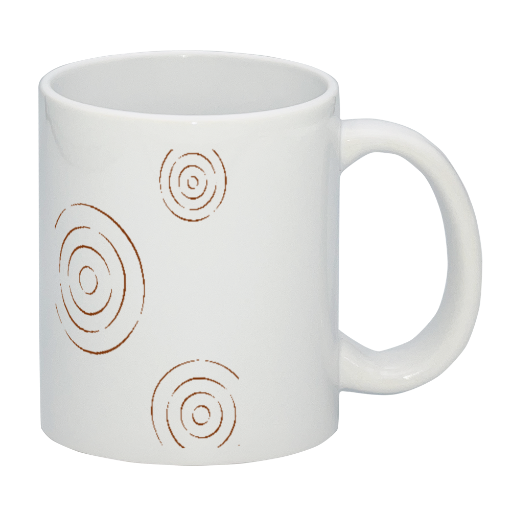 転写紙にインクをプリントし高温の熱をかけることで、インクを気化させマグカップに浸透させる加工方法です。マグカップに直接浸透させることで、表面には印刷した違和感(凸凹)が全く残りません。