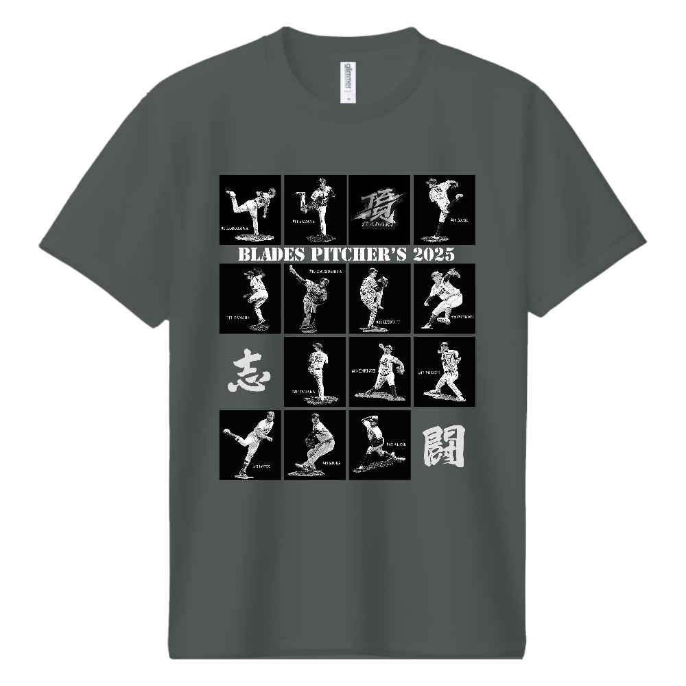 2025年 士別サムライブレイズの投手陣 13名の投球フォームをデザインした応援Tシャツです