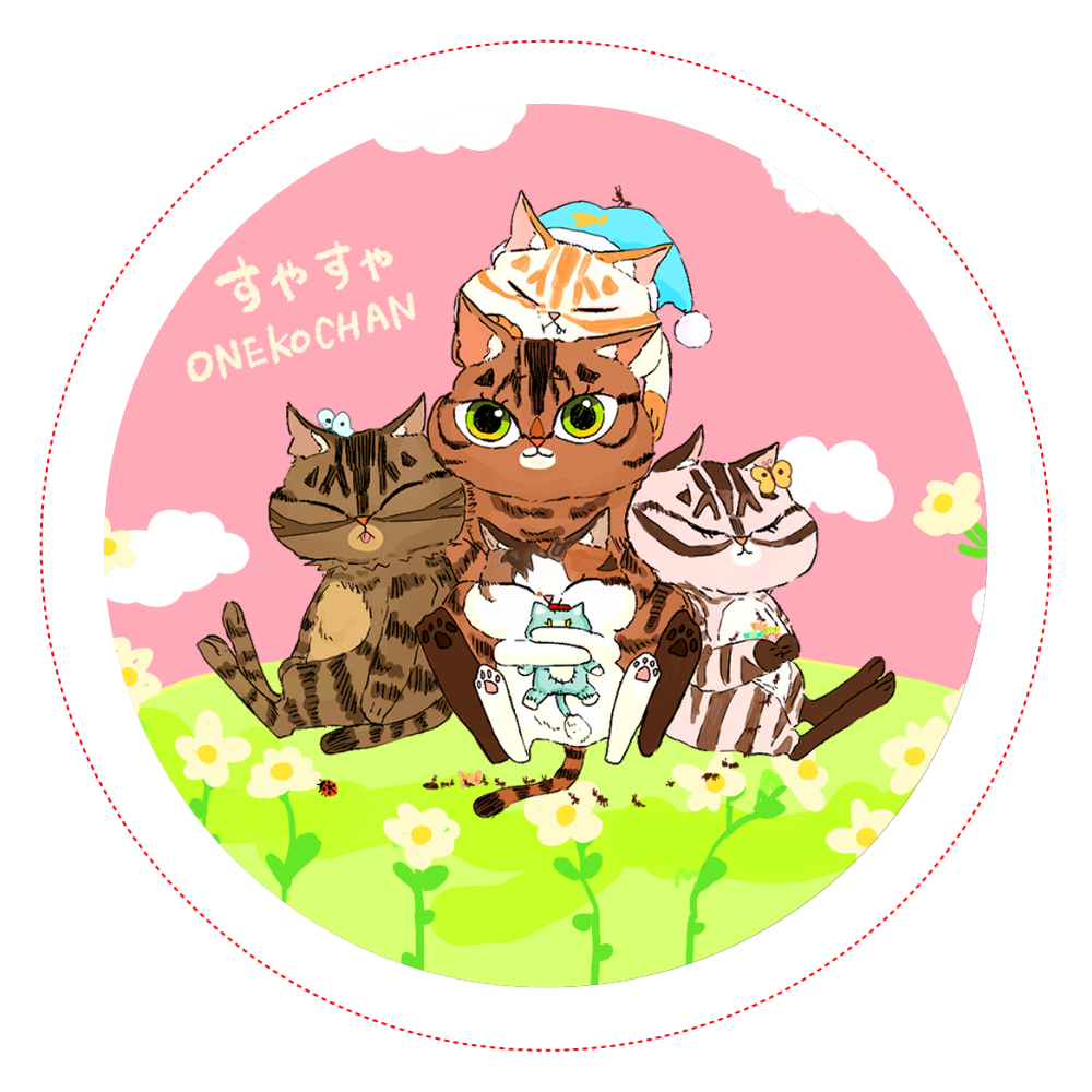 『Onekochan』の缶バッチ(お昼寝)56mm