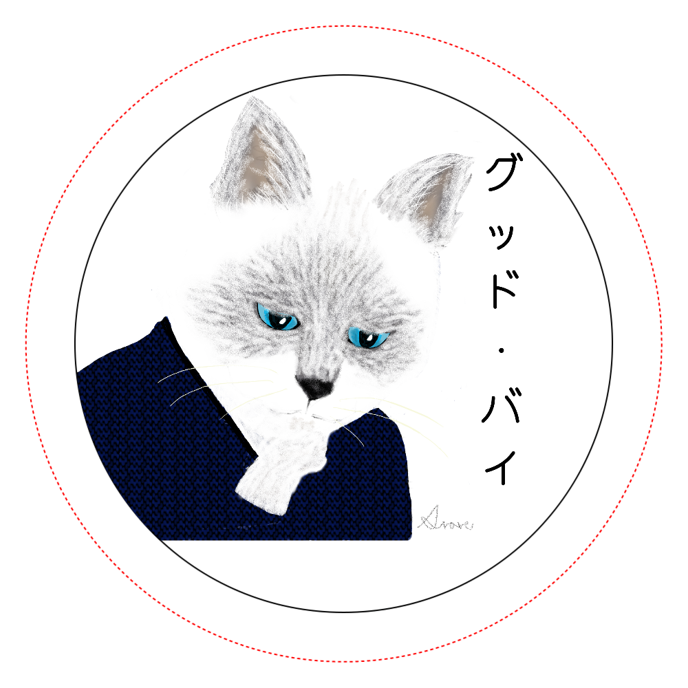 太宰猫「グッド・バイ」ARAREデザインアート 缶バッチ 文豪猫シリーズ