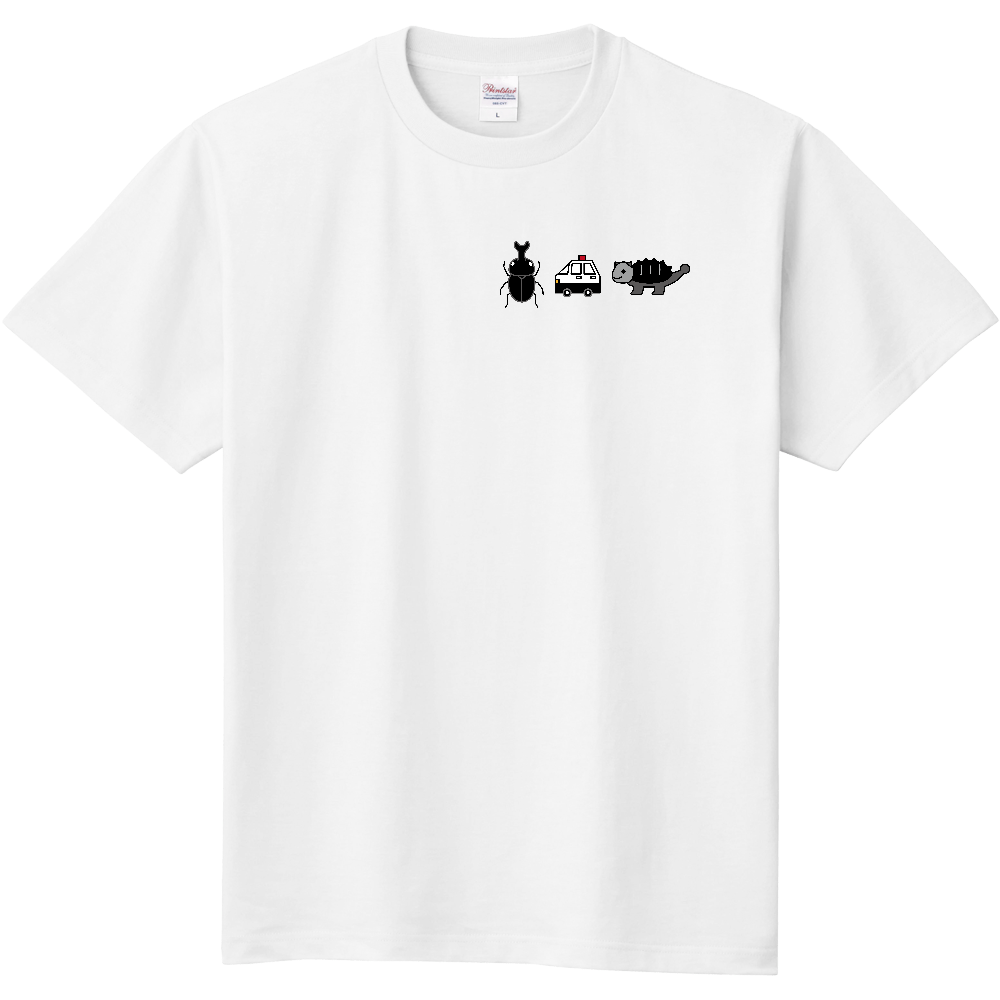 【黒いもの】定番大人Tシャツ カブトムシ・パトカー・アンキロサウルス