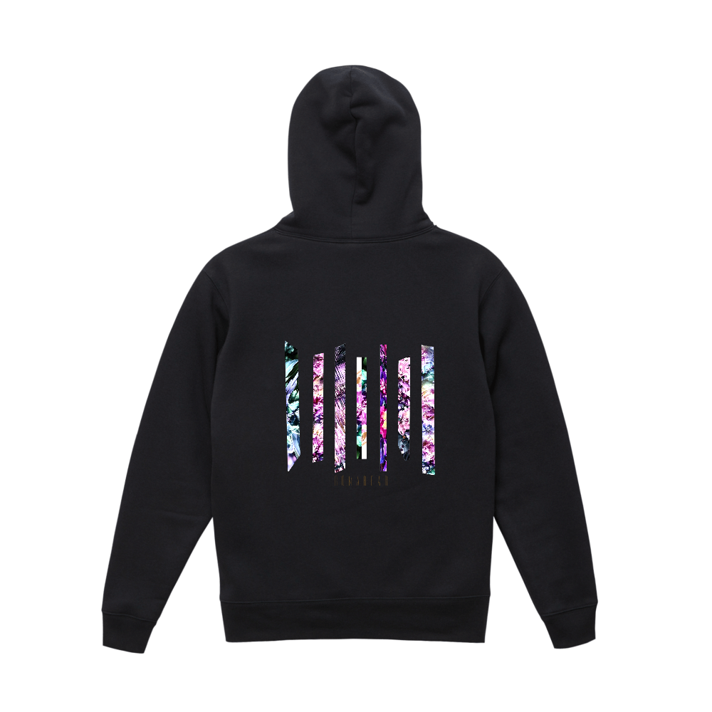 パーカーにはフードがある為 無料デザインで作成して頂いたTシャツのプリントの位置を変え パーカーにプリントし作成しました。