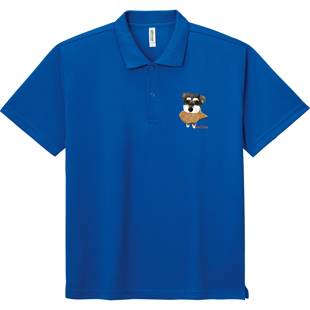 たい焼きをくわえたikeWanのポロシャツでシュ