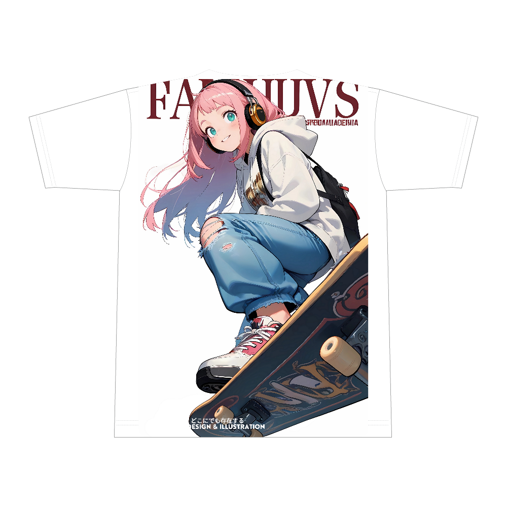 完成版が届きました、感想としては白い生地に対して黒がやや薄いかなと感じました。このデザインは白の部分よりもどちらかと言うと黒の割合が多いので、黒の生地にプリントしても良かったかなと感じます。今後デザインによって黒かホワイトかベースの生地が選べるようにして欲しいです。