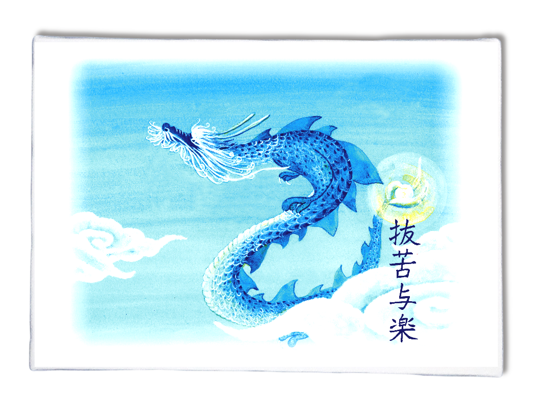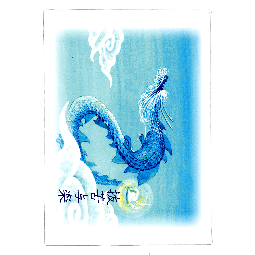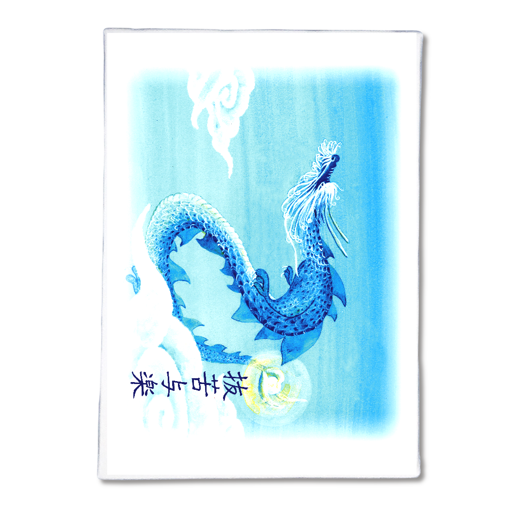龍はアクリル絵の具、色鉛筆での手描きを印刷しています。
