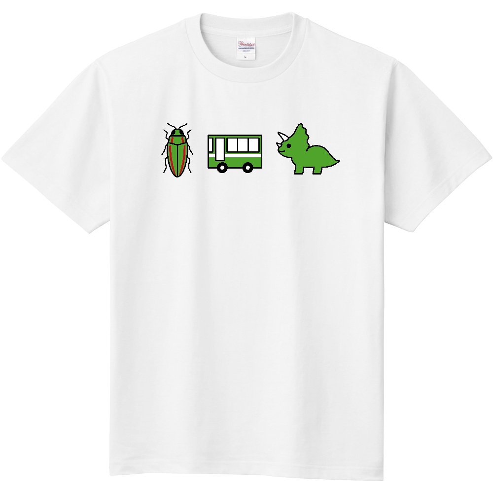【緑のもの】キッズTシャツ タマムシ・バス・トリケラトプス
