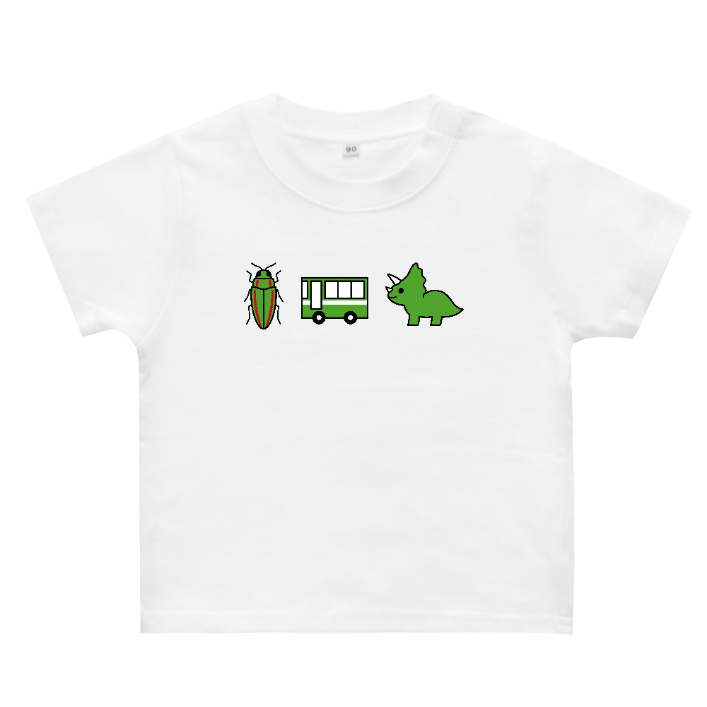 【緑のもの】ベビーTシャツ タマムシ・バス・トリケラトプス