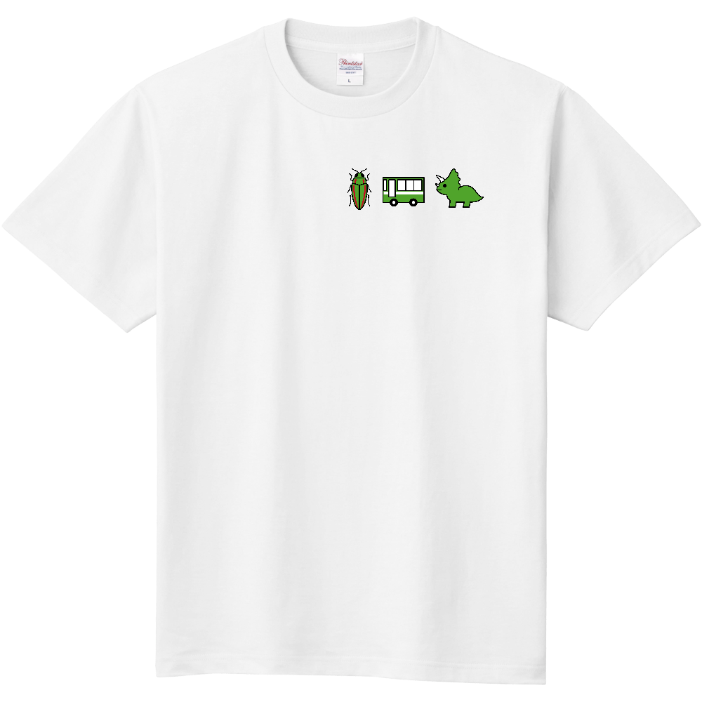 【緑のもの】定番Tシャツ(胸ワンポイント)|120cm〜XXXL|タマムシ・バス・トリケラトプス