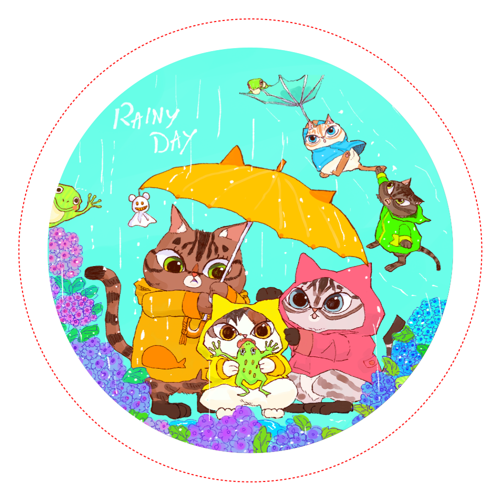 『Onekochan』の缶バッチ(雨の日)56mm